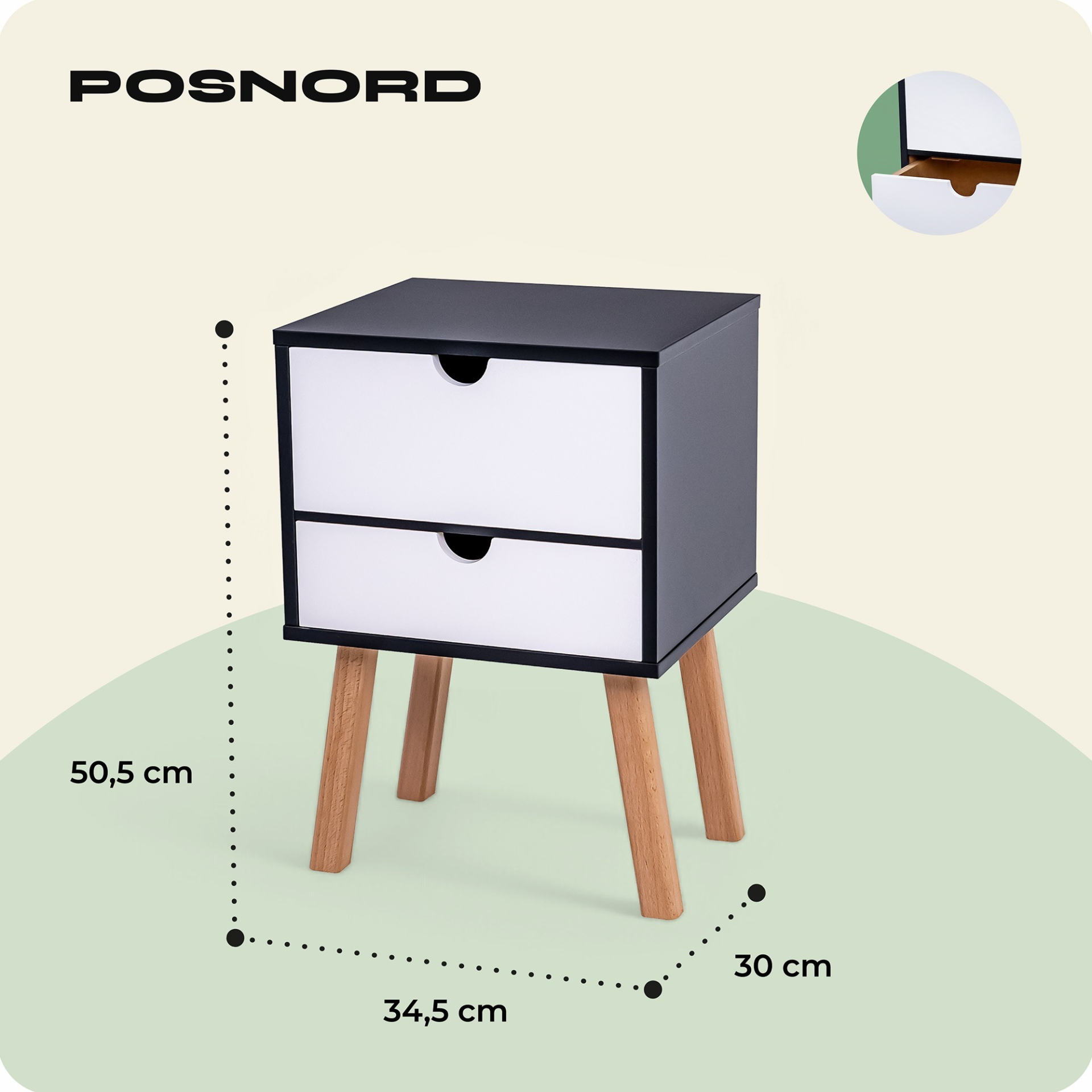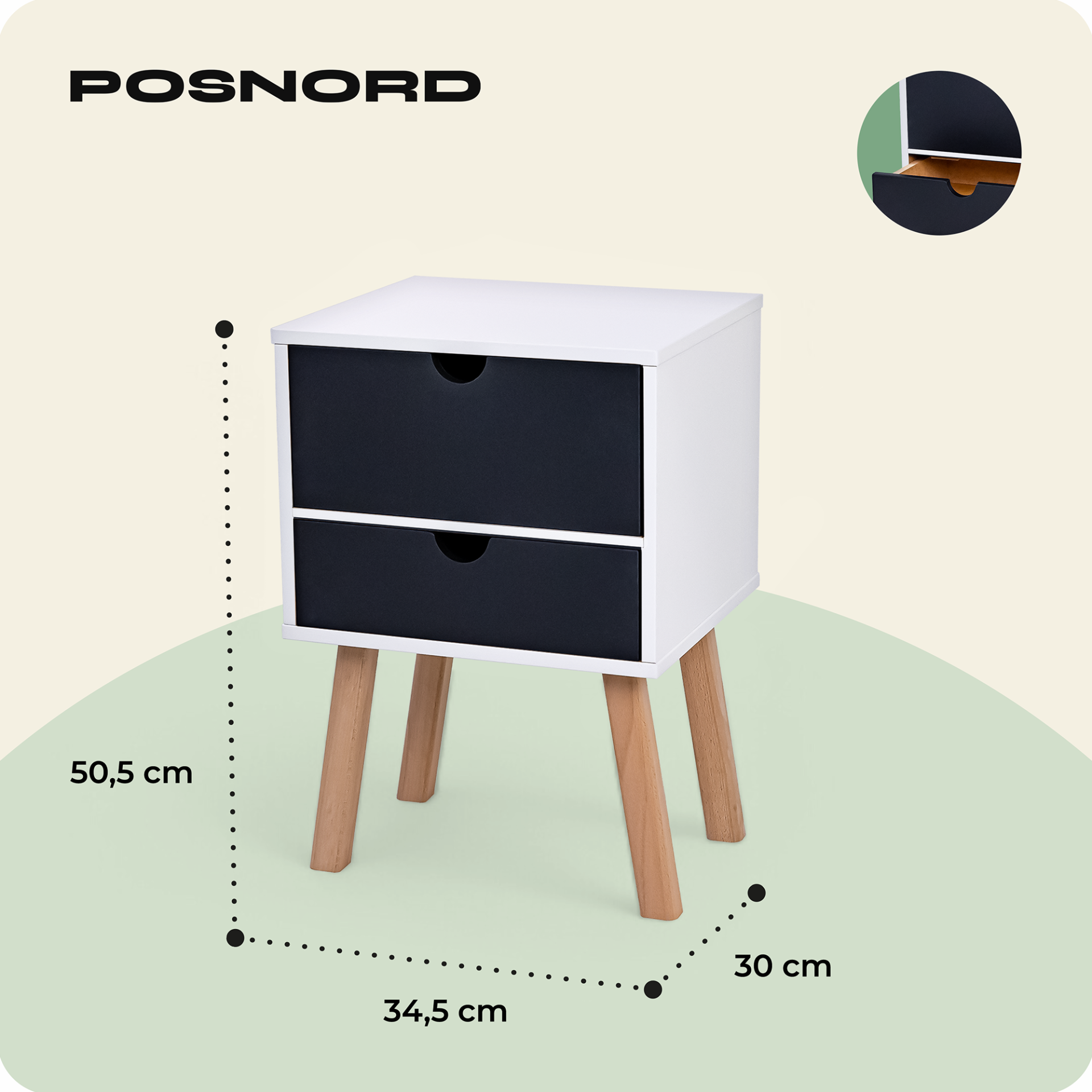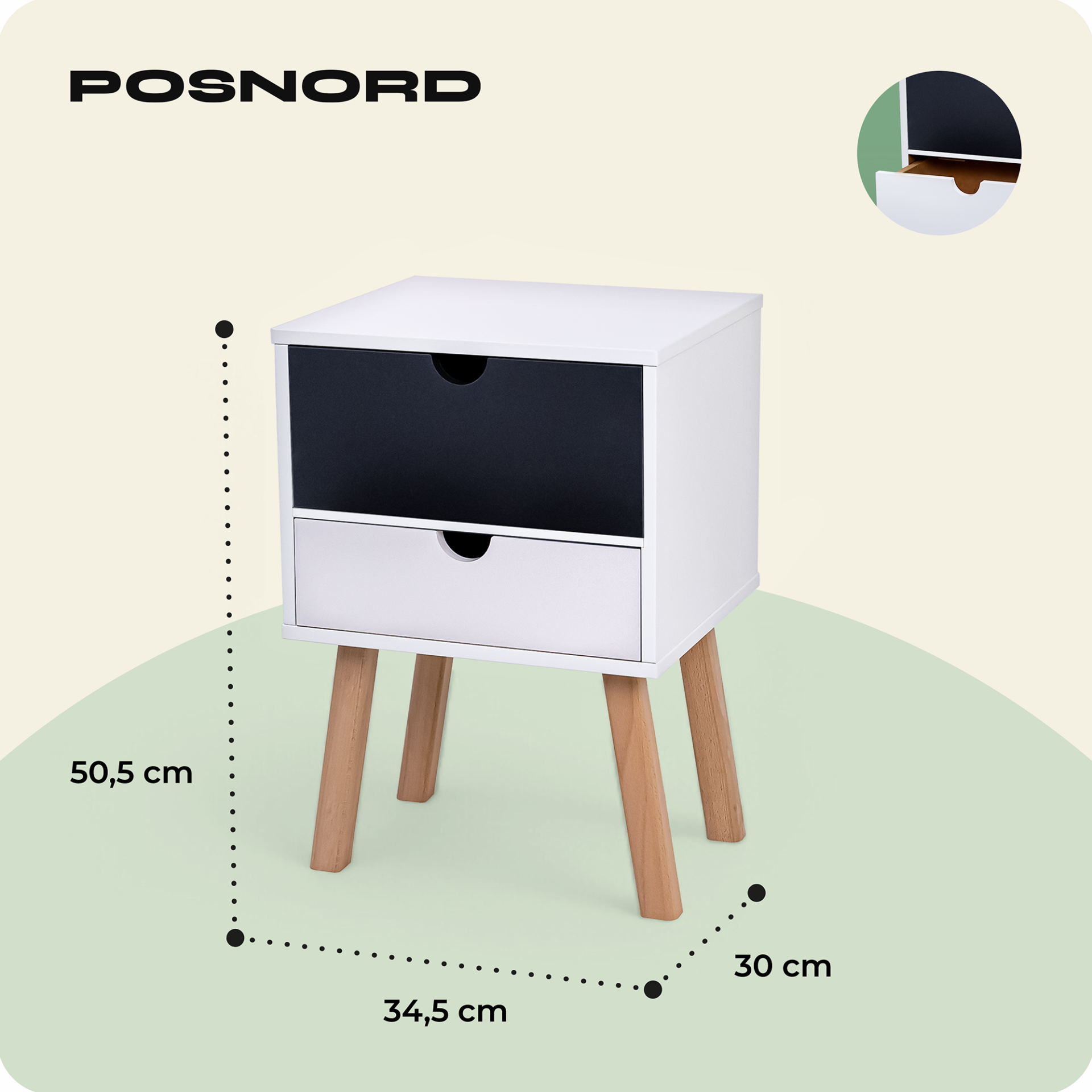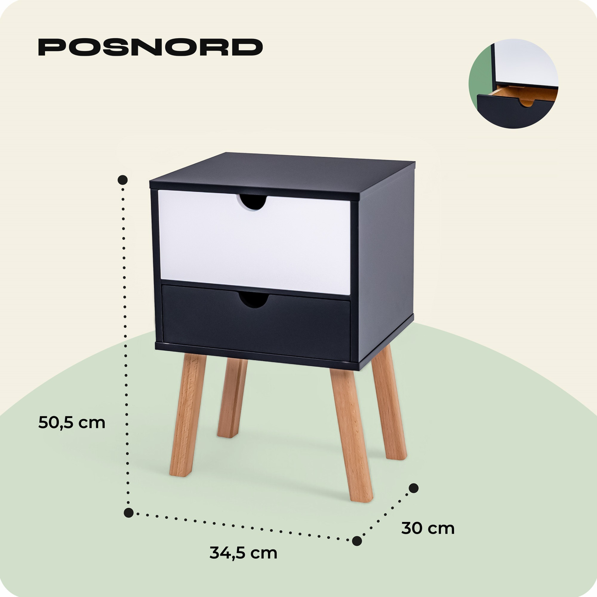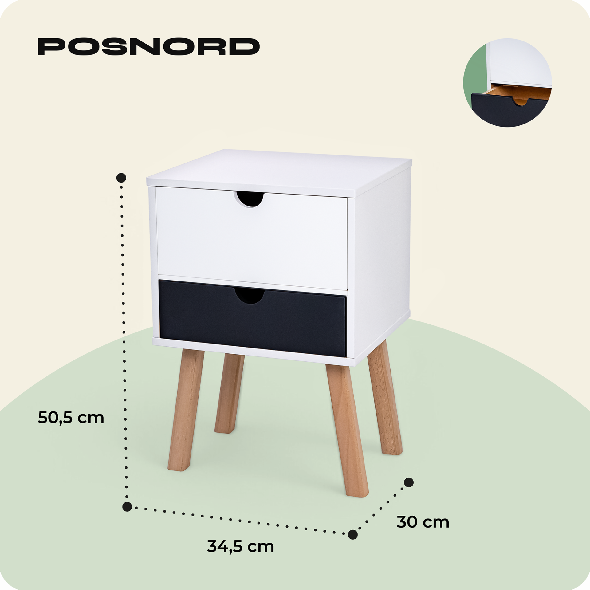 The BARTH bedside table with two drawers is not only a practical storage solution but also an elegant interior accent. The combination of MDF and stable beech wood legs ensures a solid build, while the lacquered or laminated finish adds style.