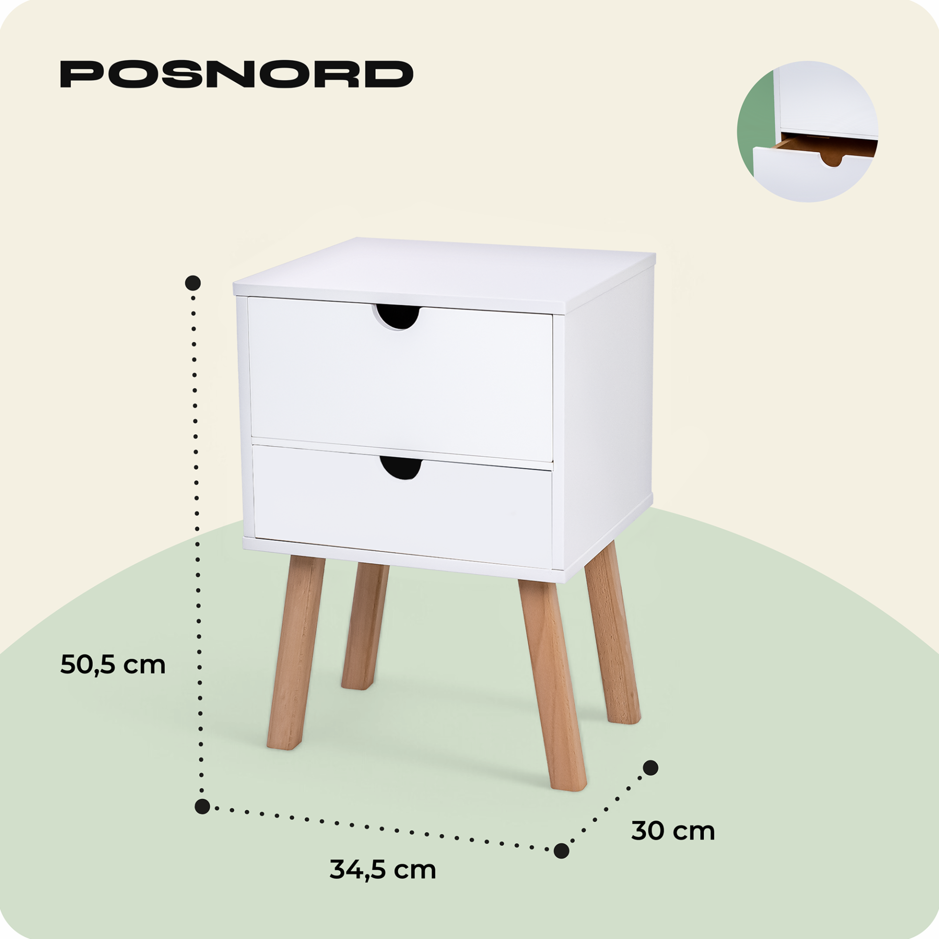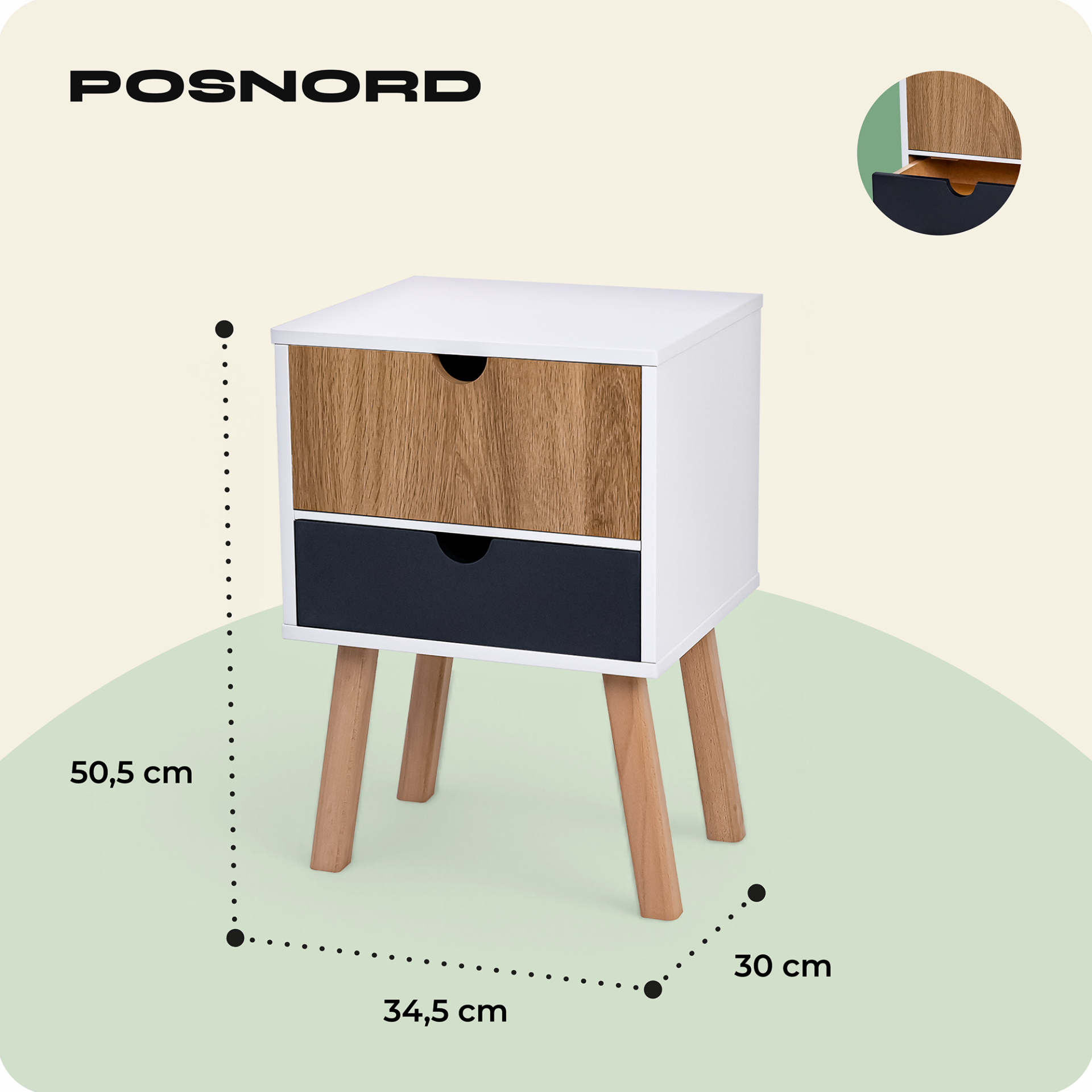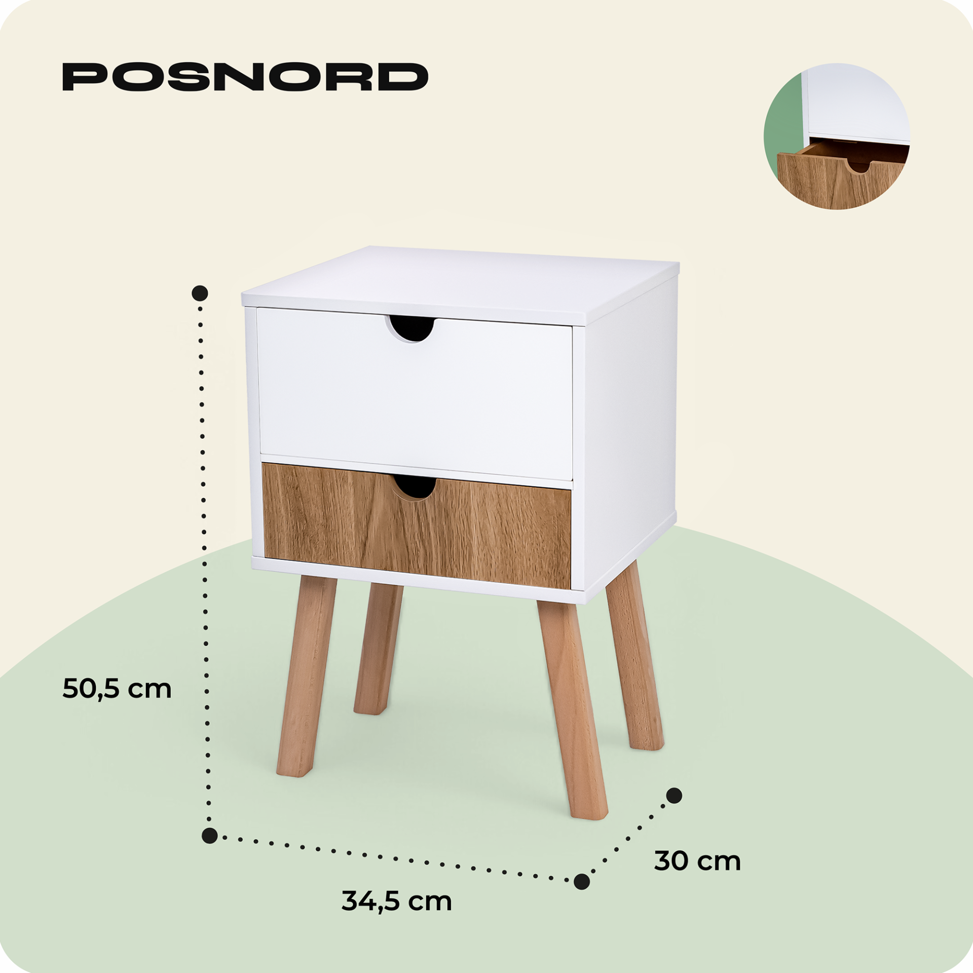 The BARTH bedside table with two drawers is not only a practical storage solution but also an elegant interior accent. The combination of MDF and stable beech wood legs ensures a solid build, while the lacquered or laminated finish adds style.